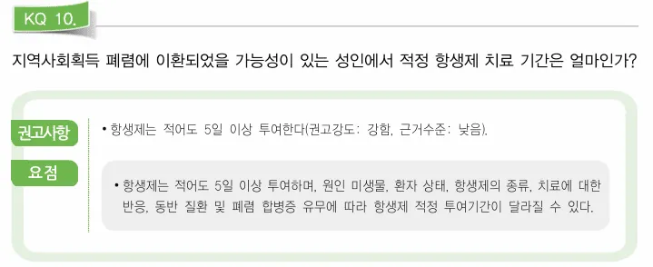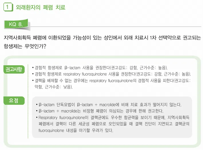 - 성인 지역사회획득 폐렴 항생제 사용지침(2017).